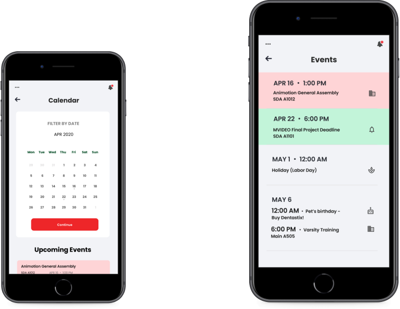 The app is equipped with a customizeable calendar to help manage events, and track tasks.