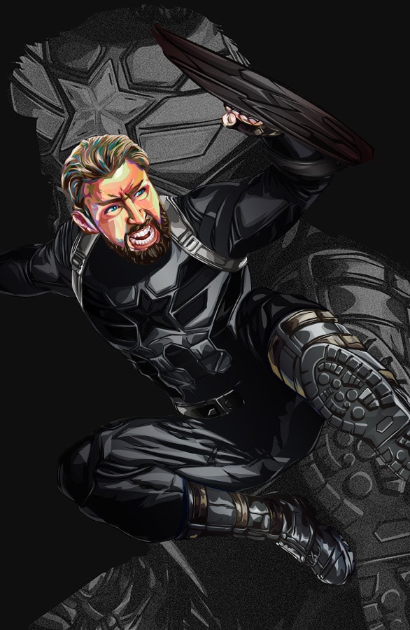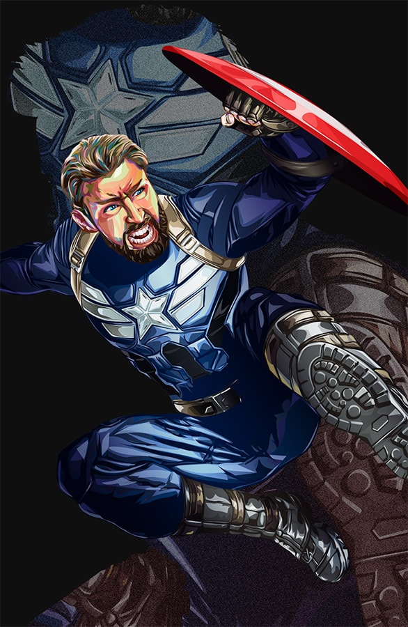 I was immensely inspired by Ryan Meinerding’s Infinity War concept art that it got me to finish this long overdue personal project. Initially planned for release during Civil War, the completion of characters got delayed as other major projects pushed it back. I painstakingly vectorized each strand of hair, wrinkle of clothing, and layers of armor. Made with Adobe CC.