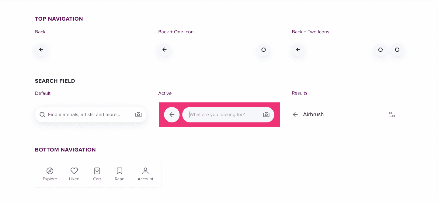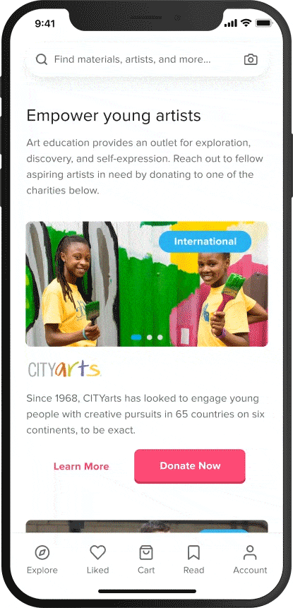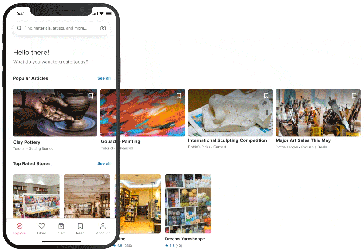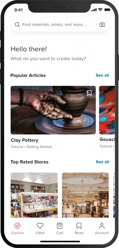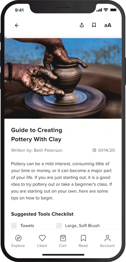 Learning traditional art is not only challenging, at times, it is also inaccessible. I have three personal goals for this design challenge: support the existence of more traditional art-focused apps, address current pain points of mobile ecommerce users, and improve reading experiences. What you can expect: