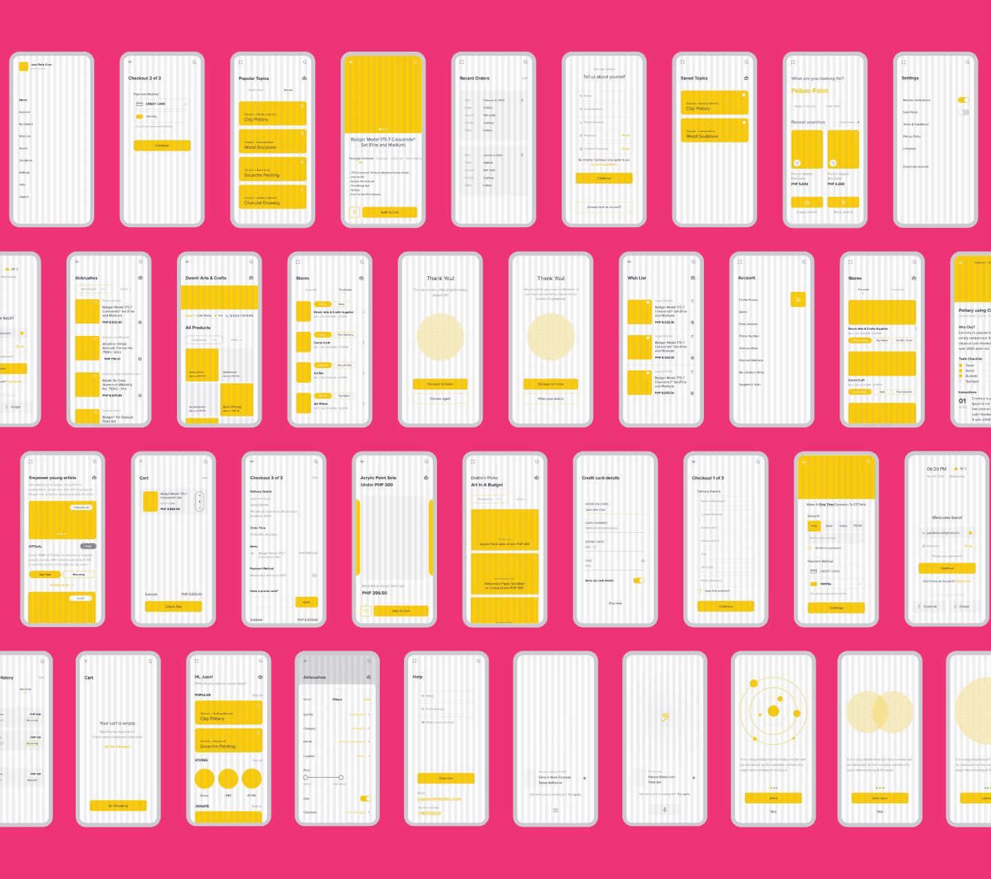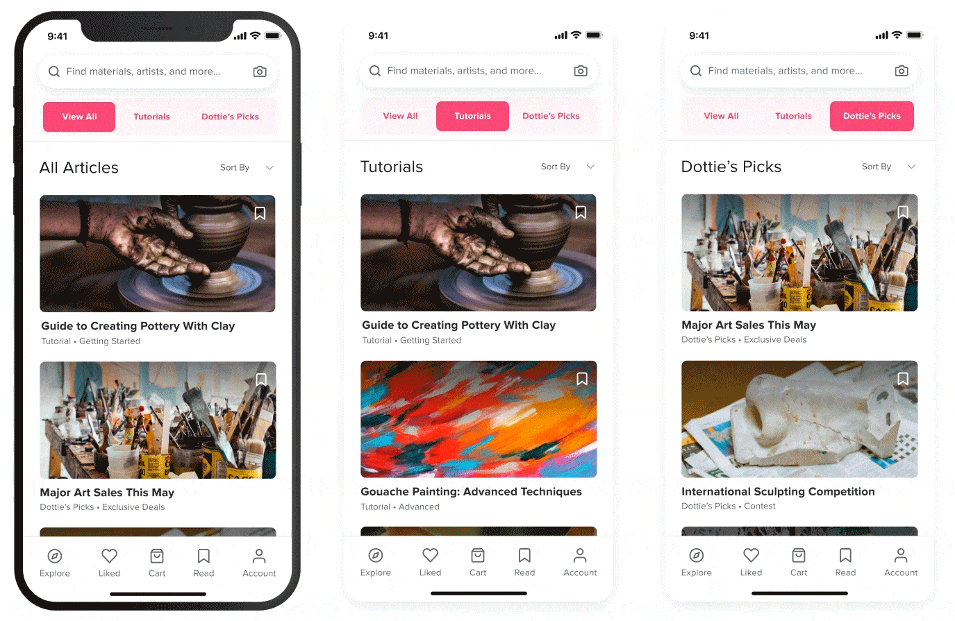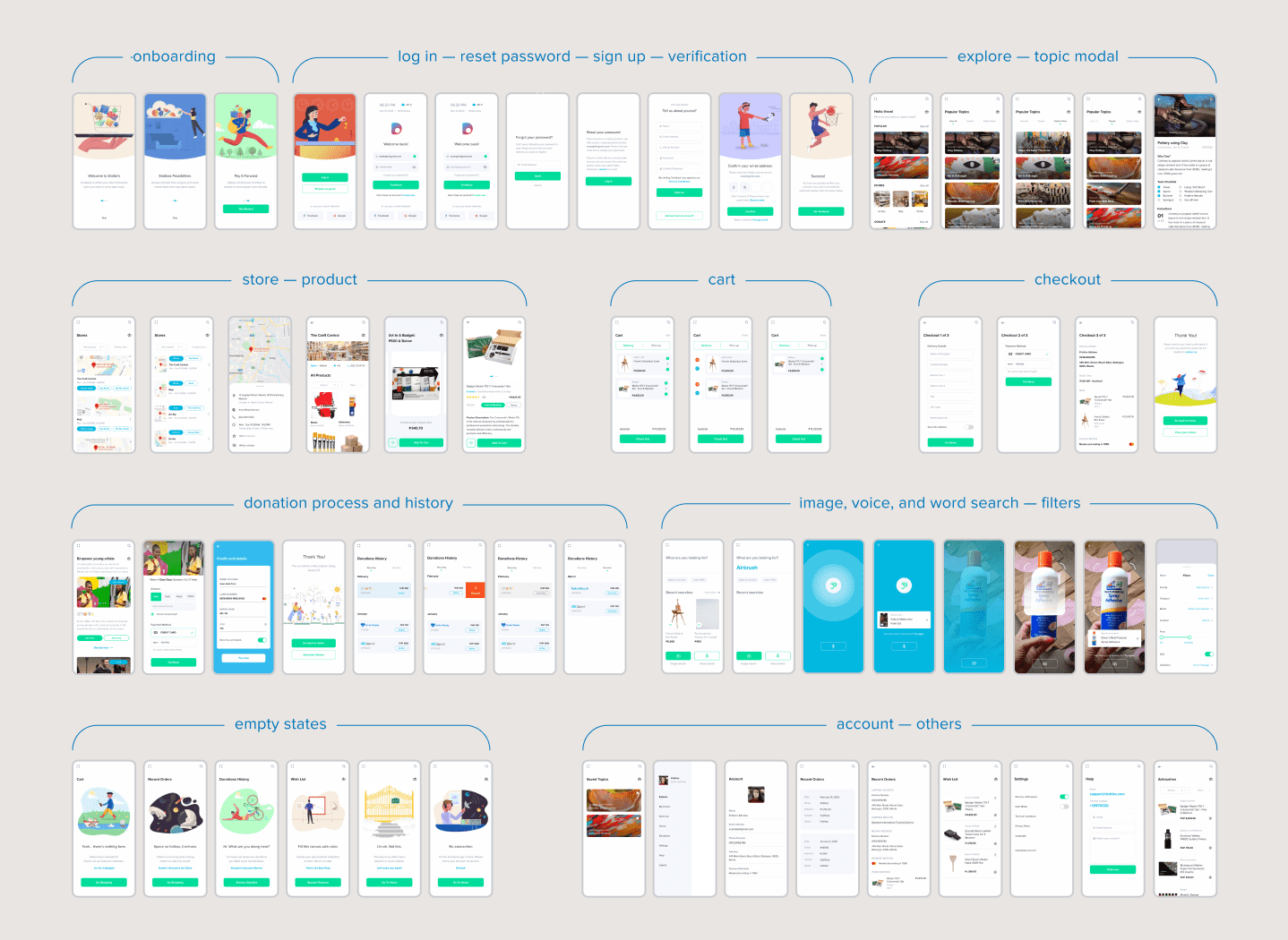 Learning traditional art is not only challenging, at times, it is also inaccessible. I have three personal goals for this design challenge: support the existence of more traditional art-focused apps, address current pain points of mobile ecommerce users, and improve reading experiences. What you can expect: