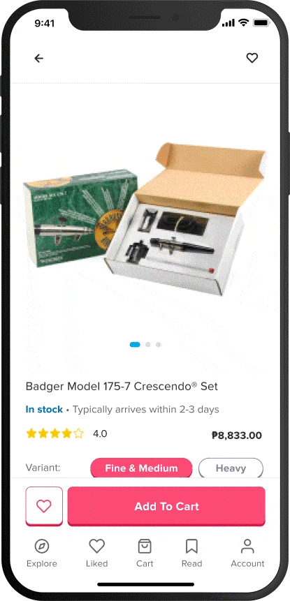 The product page contains the comprehensive detail about the item selected. It is made in five parts: images, variants (if any), product description, reviews, and recommendations.