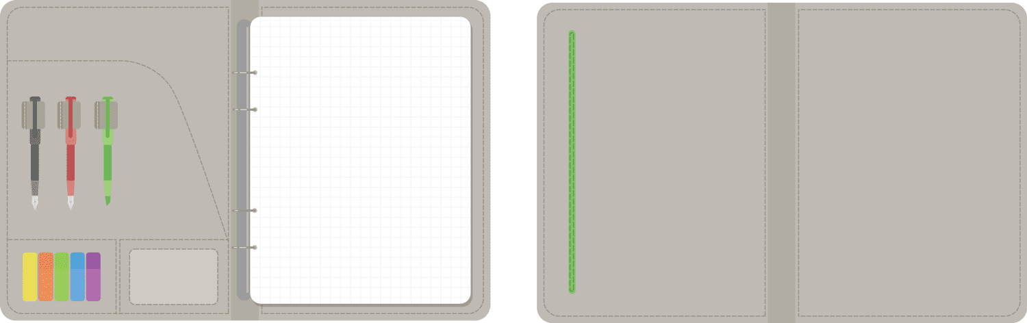 This basic kit is curated for a hassle-free note-taking and organizing. The notebook case is sealed by an elastic band to help secure the contents of the sleeve when transported.